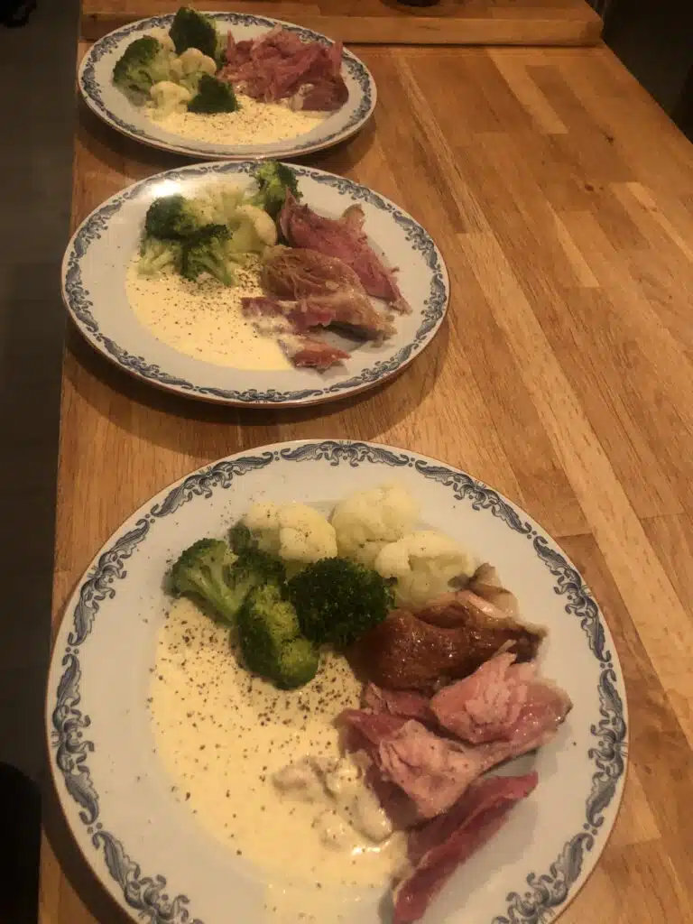 Hva er real mat? Noen ganger er det lettere å forklare hva det ikke er.. Det er ikke Grandiosa, cornflakes, brødmat, poteter, ris eller pasta. De matvarene er kun dårlig vomfyll som ikke inneholder essensielle næringstette og viktige byggeklosser for kroppen din. Dårlige karbohydrater som kun gir deg blodsukker-topper og faktisk forvandles til sukker og ødelegger din metabolisme. En bolle gir den samme effekten. Eller godteri eller brus. Jeg har tatt noen bilder av hva jeg selv lager og som er fantastisk smaksrikt og ikke minst fulle av næring som proteiner og naturlig animalsk fett. Sunne karbohydrater i form av salat, brokkoli eller blomkål.